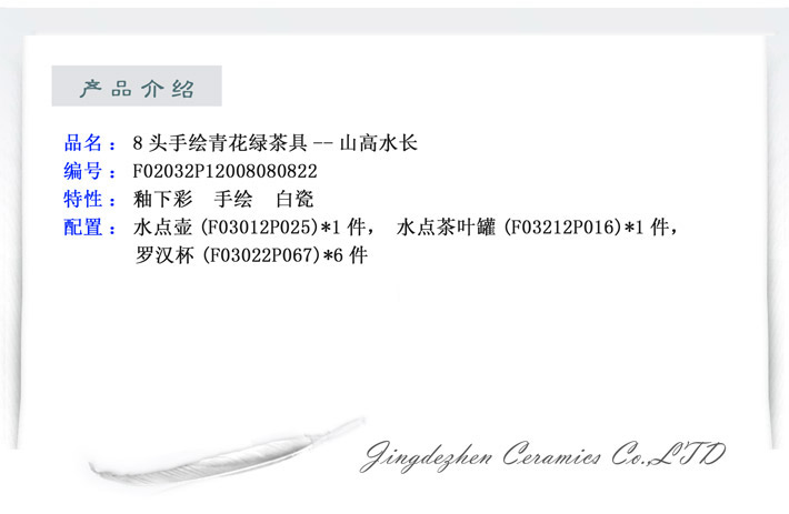 8頭手繪青花綠茶具山高水長(zhǎng)