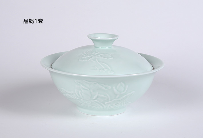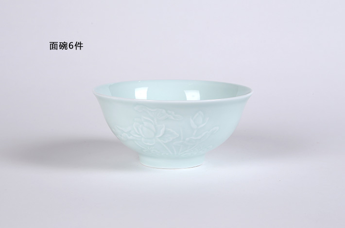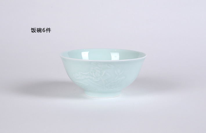 32頭影青雕刻餐具荷花