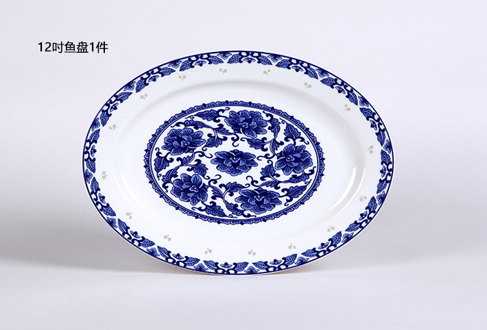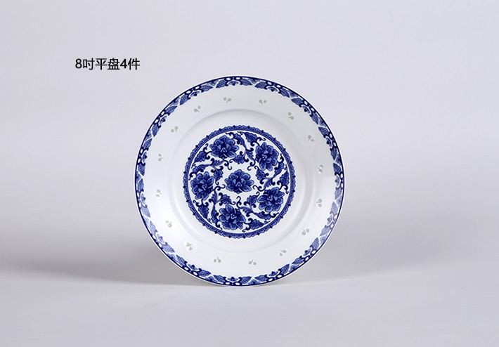 56頭青花玲瓏花卉中餐具
