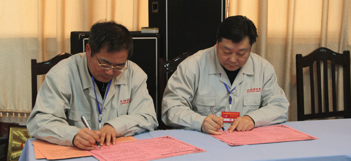 董事長(zhǎng)與總經(jīng)理簽訂了2013年經(jīng)濟(jì)責(zé)任書(shū);與吳副總簽訂了企業(yè)文化建設(shè)責(zé)任書(shū)。