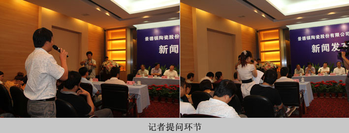 新聞發(fā)布會(huì)上,市人大副主任、市委秘書長余振泰,市政府副秘書長、市國資委黨委主任劉朝陽,市旅游局局長饒寧生,陶瓷股份公司黨委書記、董事長王耀、黨委副書記、總經(jīng)理夏躍中等相關(guān)人員就陶瓷股份公司近年來的發(fā)展、公司工業(yè)旅游發(fā)展、實(shí)施品牌戰(zhàn)略等方面回答了與會(huì)新聞媒體記者的提問。